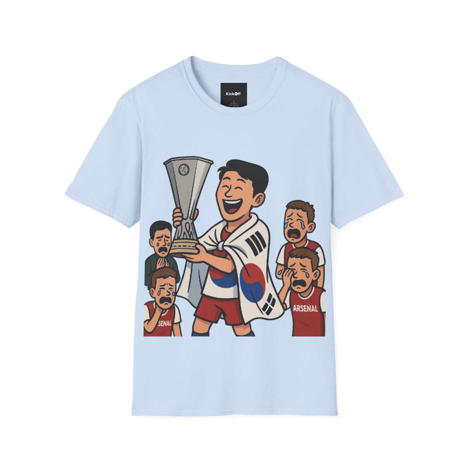 A cartoon tribute to Son finally lifting his first trophy at Spurs. A moment years in the making, reimagined with a playful, humorous twist. Perfect banter tee for Spurs fans who have waited just as long.